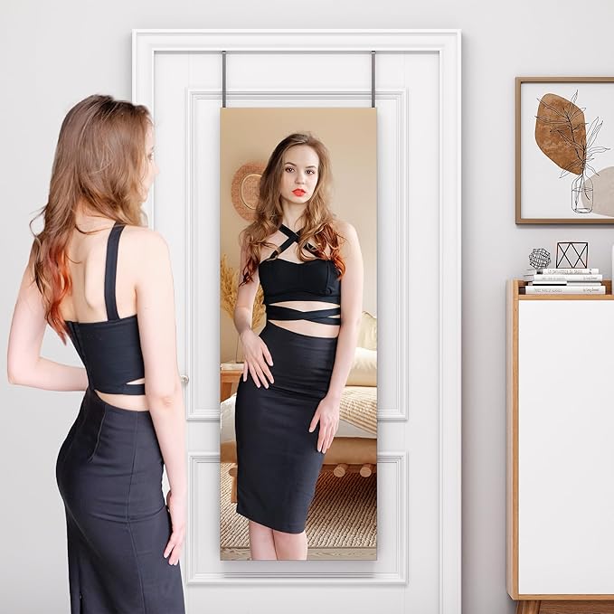 - 【EASY INSTALLING & SAVING SPACE】Wall & Door Hanging Mirror Design. Arrange according to your need, you can hang this large mirror on the wall or over the door to save more space, very suitable for compact spaces.Perfect as a full-length mirror, dressing mirror in bedroom, living room, wall-mounted mirror in bathroom, etc.