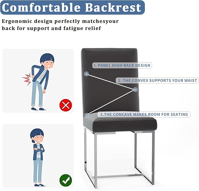 - Designed with Grey PU Leather and High-Density Sponge, this Mid-Century dining chair offers exceptional comfort and style. Its geometric backrest is complemented by a wide seat, which is skillfully upholstered in amazing and cozy fabrics.