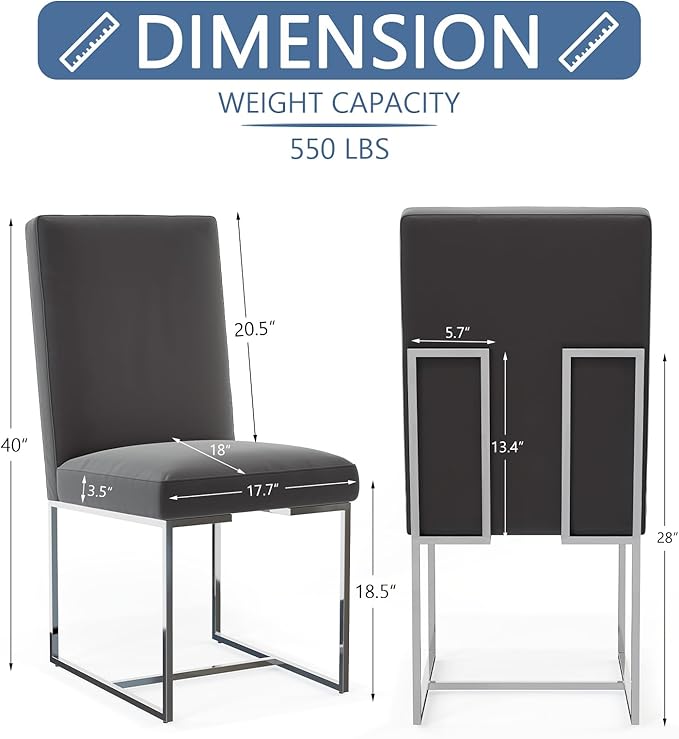 AUZ Dining Chairs, Mid-Century Modern Upholstered Chairs, Gray Faux Leather Dining Room Chairs Set of 2 with Silver Sled Legs