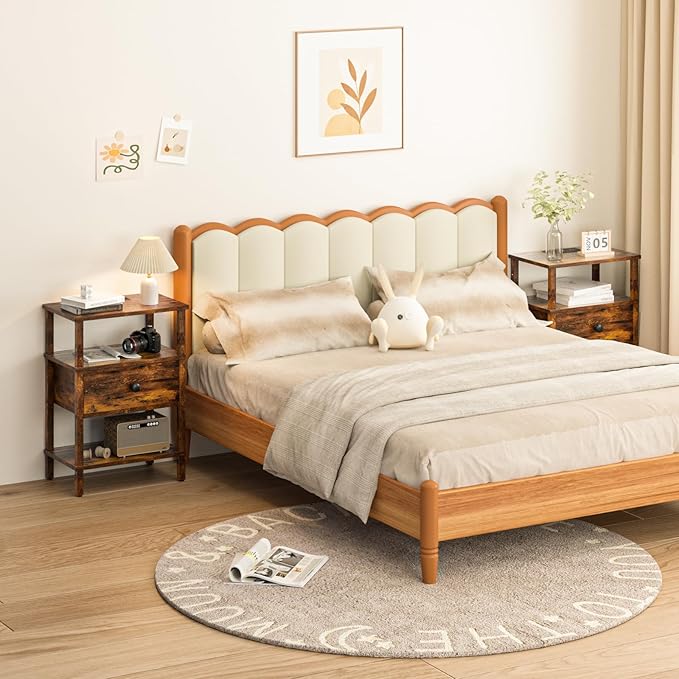 Lerliuo Nightstand with Charging Station and USB Ports, 3-Tier Storage End Table with Drawer Shelf, Night Stand for Small Spaces, Wood Bedside Table for Living Room, Bedroom - Retro Brown…