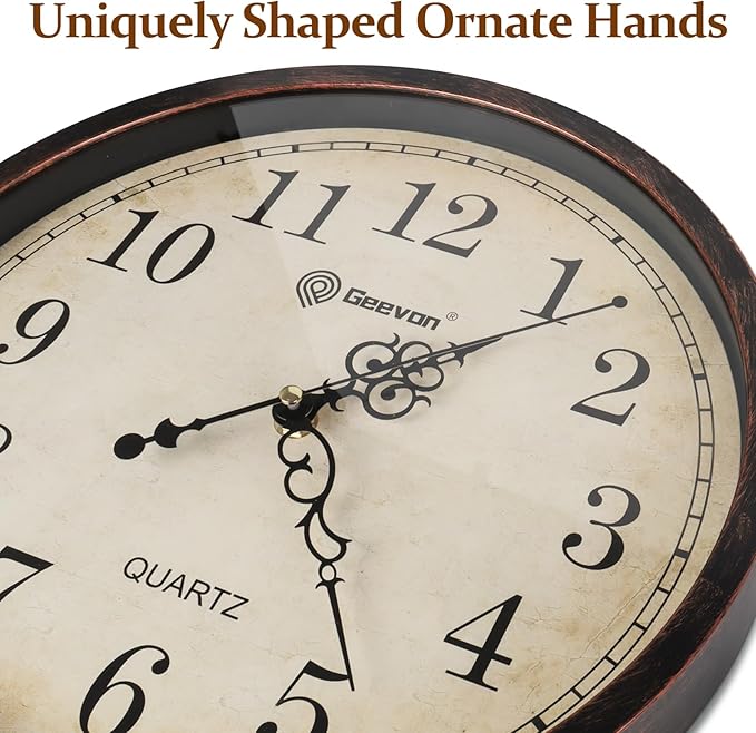 Geevon Retro Silent 12 Inch Wall Clock Non Ticking, Rustic Vintage Clock Quartz Decorative, Battery Operated Wall Clock for Kitchen/Office/Classroom/Bedroom/Living Room Decor