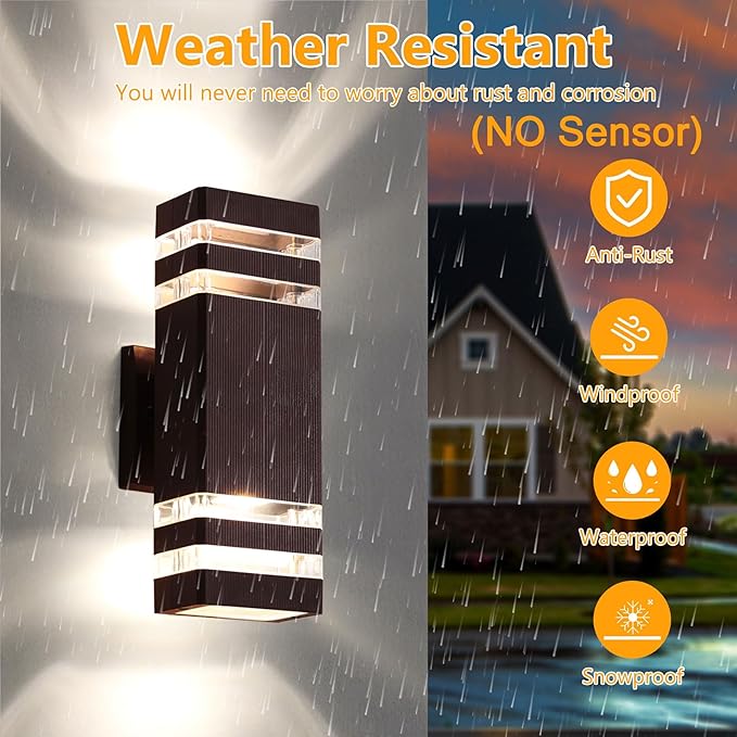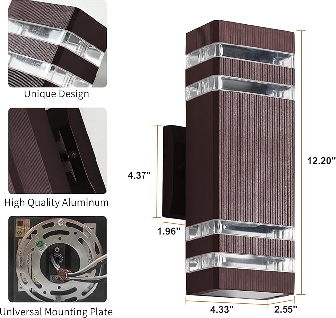 - Brown Outdoor Wall Sconce: Modern and stylish wall mount light fixture is ideal for indoor and outdoor. Waterproof up and down lights outdoor not only makes the outdoor light projects out the beautiful light, but also make your home stand out. This outdoor porch lights is ideal for the doorway, hotel, porch, garden, garage, yard and patio.