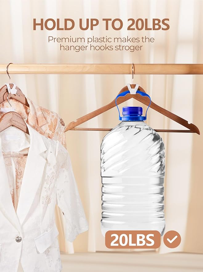 - 【Premium Hanger Connector】Made of high quality plastic, no peculiar smell, the hanger connector hooks are strong enough to hold the heaviest items up to 9kg /20lb. The clothes hangers hooks have a smooth surface and rounded corners that prevent you from getting scratched. The triangular structure makes the hooks more stable for hanging items.