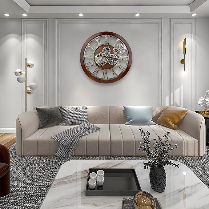 - WIDE APPLICATIONS: Oversized wall clock is not only a timepiece, but also a piece of artwork, greatly adding charm to a room, like living room, farmhouse, fireplace, bedroom or dining room, studio, gallery, loft, cafe, bar, club, etc. Rustic vintage wall clock will become an instant conversational piece for the moving gears and how cool it looks. Also awesome gifts for families or friends