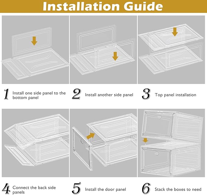 - Worry about assemble? - Each employee involved in assembling this clear shoe box thinks it is so easy. By watching the installation notes, anybody can set up this shoe box organizer with ease.