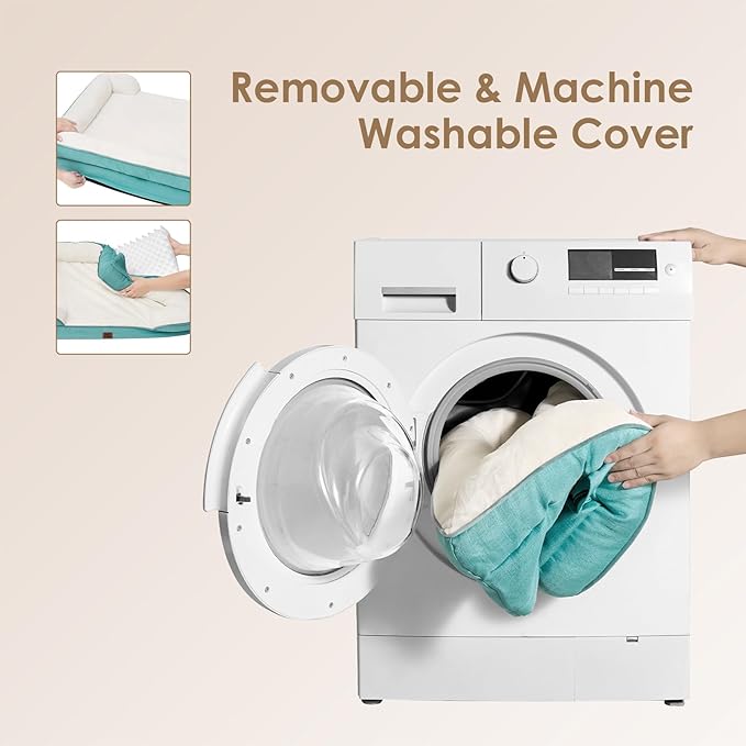 - CARE INSTRUCTIONS: Our dog bed features a removable and washable cover with a zipper closure, making it easy to clean. Remove the foam insert, and the cover can be washed in a machine. Please note that the foam insert is not washable. Allow the bed to expand for 24-48 hours after unpacking.