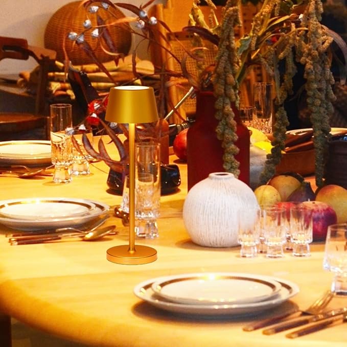 Cordless Table Lamp Rechargeable,with Touch Dimming and IP54 Waterproof Function Desk Lamp,Suitable for Indoor and Outdoor Lighting Gold