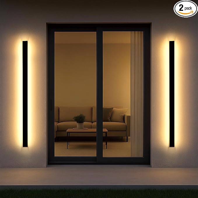 - 【Excellent Lighting Effect】The outdoor strip wall light is 3000 K warm white, energy saving design, it will produce a soft and romantic light no flash, protect the eyes. They are very modern looking and give off plenty of light, illuminates the porch entryway without casting light towards neighbors.