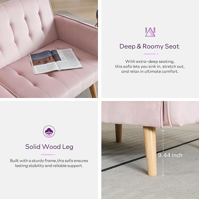 - Quality Selection: Soft skin-friendly velvet fabric, the whole sofa presents a shiny glossy feeling, advanced and exquisite, suitable for all kinds of space, in line with the choice of different people. Solid wood seat frame and high quality oak legs, stable and solid