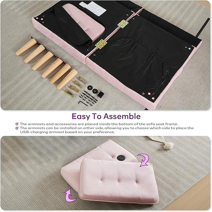 - Easy To Install: Simply install the armrests and sofa legs and link the seat frame in three steps, which takes only 15 minutes! When you open the package, please note that the sofa armrests are hidden at the bottom of the sofa seat frame, just pull the black cloth at the bottom of the seat frame to find the armrests
