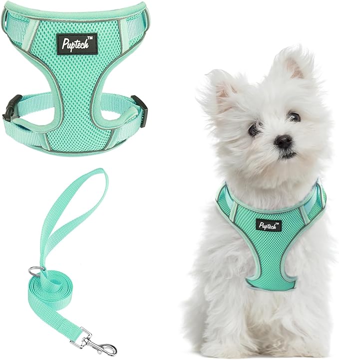 PUPTECK Small Dog Harness and Leash Set, No Pull Adjustable Puppy Cat Harness, Reflective Soft Mesh Pet Vest Small Sized