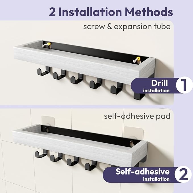 - [Your Preference, Your Assurance]: Effortlessly opt for your favoured installation method - adhesive application for wall preservation or the traditional screwing technique for added security. Robust adhesive pads ensure a secure, damage-free hold, ensuring swift, adaptable, and carefree setup for this versatile key hanger for wall