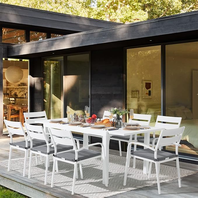 - 【WIDE APPLICATION】: With its extension design and quality aluminum, the extendable outdoor dining table conveniently expands to make it easy for you to add extra seats when needed. Perfect for hosting, either using the expandable table as your main dining table or as a serving table for larger events.