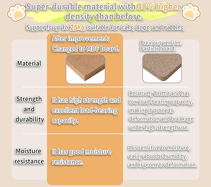 - 🐱【Industrial-Grade MDF Construction】: Engineered with premium medium-density fiberboard (MDF) that delivers 30% higher load capacity than standard particleboard. Laboratory-tested to withstand 35lbs dynamic pressure without deformation, this splinter-free core eliminates messy wood chips while providing military-grade stability for vigorous climbers.
