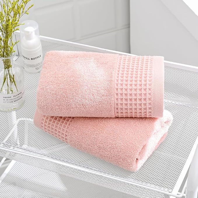 sense gnosis Pink Hand Towels Set of 2 Soft 100% Cotton Waffle Pattern Decorative Highly Absorbent Hotel Bathroom Hand Towel 13x29 Inch
