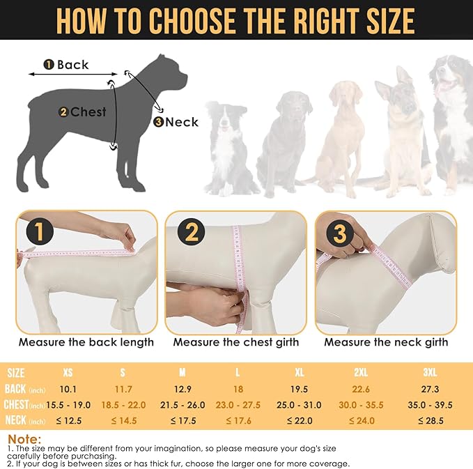 - 【Size Matters】 --- The Large size raincoat's back length is 18 inches, neck girth is 17.6 inches, and chest girth range is 23-27.5 inches. Please measure your dog's back length, neck girth, and chest girth, and then refer to the size chart before purchase. If your dog is between sizes or has thick fur, choose the larger one for more coverage.