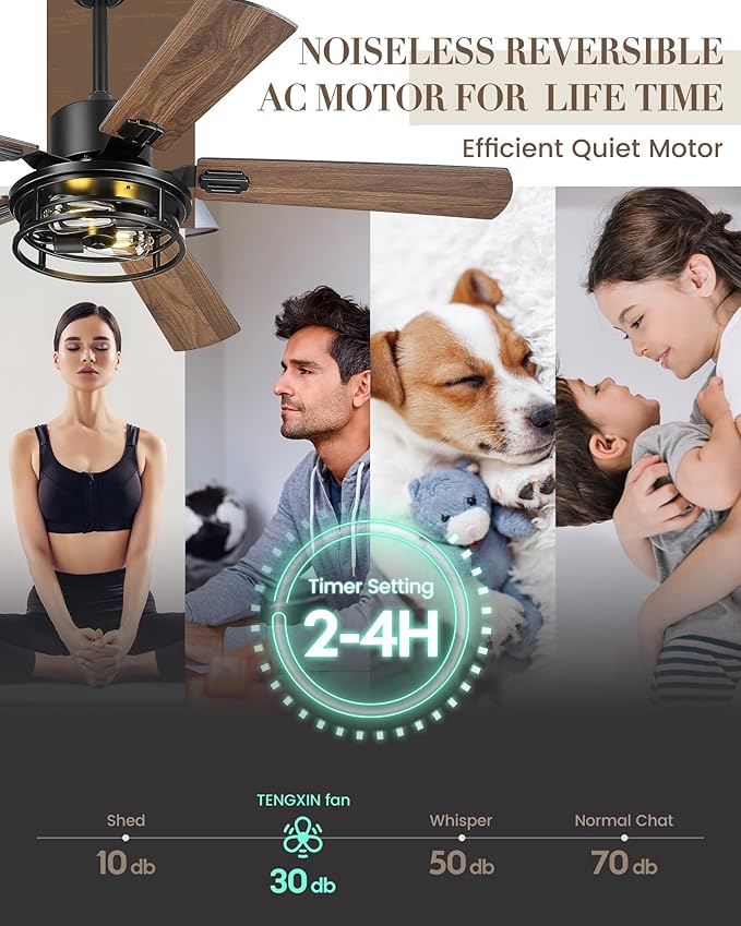 - Dual-Finish Design & Premium Build: Crafted with durable metal frame and wood blades, this 52 inch ceiling fan offers dual finishes to complement any home decor. Its dual surface blades and robust construction blend modern aesthetics with farmhouse charm, perfect for family centric spaces