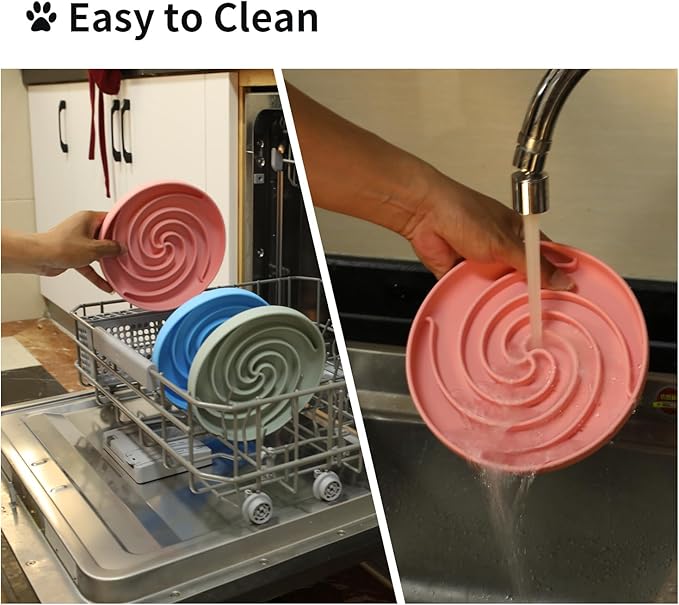- Easy to Clean: Cleaning silicone slow feeder dog bowls is simple; you can either rinse them with water or put them in the dishwasher. Their smooth surfaces make it difficult for food residue and greaand qrease to accumulate, which sianifcantly lessens the cleaning load on pet owners and ensures that their pets are fed sanitary and clean food
