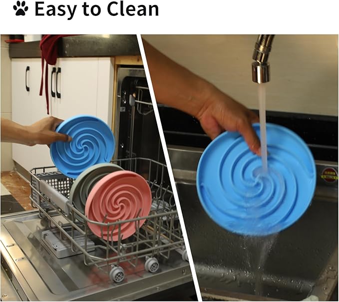 - Easy to Clean: Cleaning silicone slow feeder dog bowls is simple; you can either rinse them with water or put them in the dishwasher. Their smooth surfaces make it difficult for food residue and greaand qrease to accumulate, which sianifcantly lessens the cleaning load on pet owners and ensures that their pets are fed sanitary and clean food
