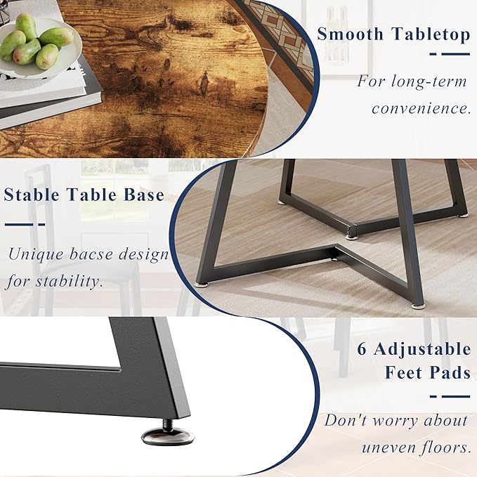 - Lightweight & Stable-This round kitchen table set weighs 39 pounds gross and is very light. The 31.5 inch large tabletop can meet your daily dining needs. And the legs are also equipped with adjustable foot pads so that you can use them on different occasions without worrying about shaking.