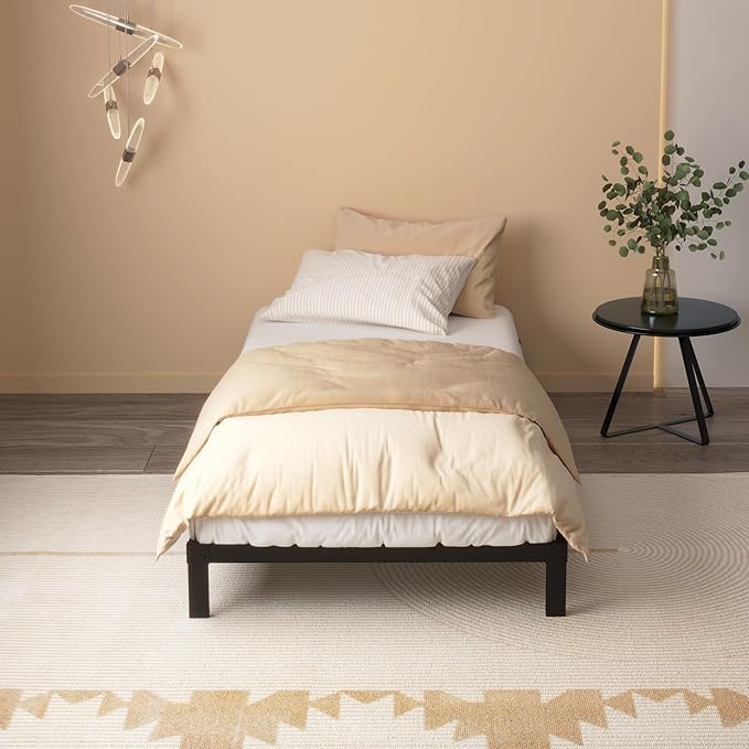 - No Box Spring Required: Twin size bed frame simplifies the purchase process without having to match a box spring, save your time. Enjoy zero noise and non-shake comfort experience with twin bed frames.
