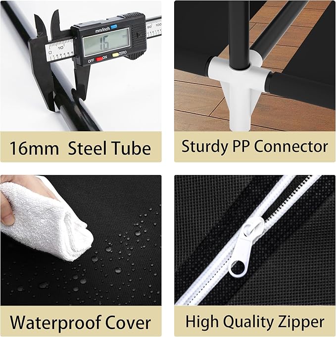 - Sturdy and Sturdy:The size of the wardrobe closet for hanging clothes is 52 x 17.9 x 66.9 Inch, which uses a 16mm diameter steel pipe with high hardness and good load-bearing capacity. It can support the weight of your clothes well and is not easily bent. Each steel pipe is firmly connected to the plastic connector, which is very stable and will not tilt. You can use it with confidence.
