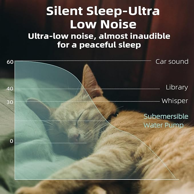 - Ultra-Quiet Design: With an advanced ultra-quiet design, our pump runs almost silently with a noise level below 20db, ensuring a peaceful night's sleep for you and your pet.