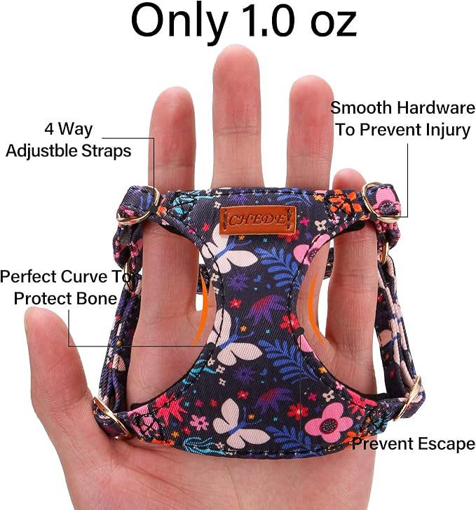CHEDE No Pull Floral Pattern Dog Harness- Lightweight and Soft Dog Harness, Adjustable Small Dog Harness and Leash Set, with Dog Leash, Suitable for Puppy Small and Medium-Sized Dog