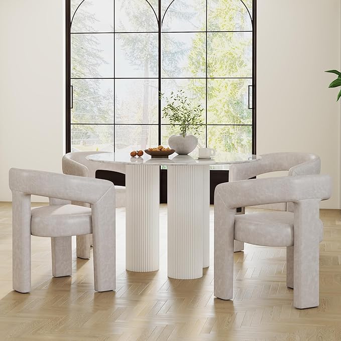 Modern Barrel Dining Chairs Set of 4, PU Leather Upholstered Accent Side Chair with Arms Comfy Makeup Vanity Chairs, Dining Living Room Kitchen Chairs, Grey