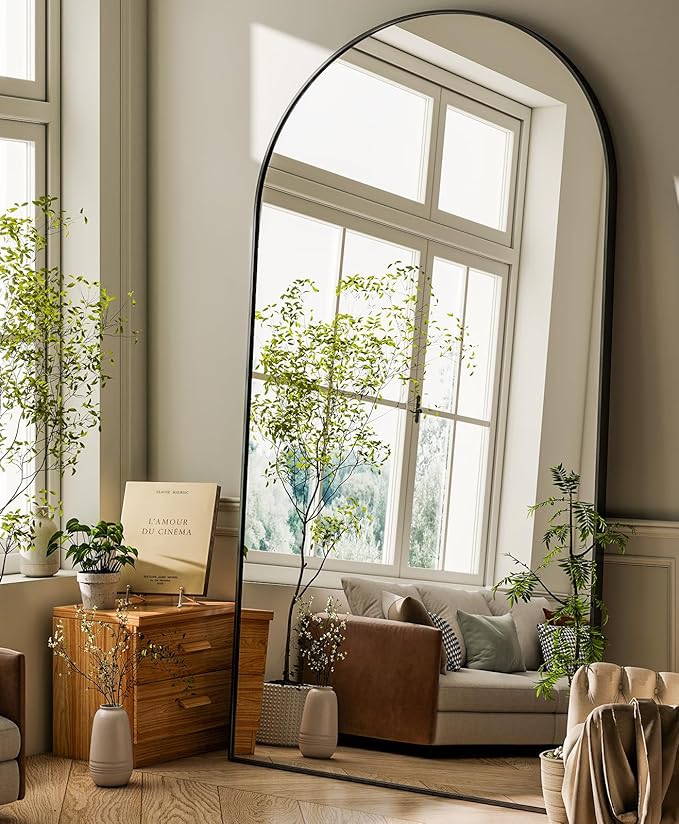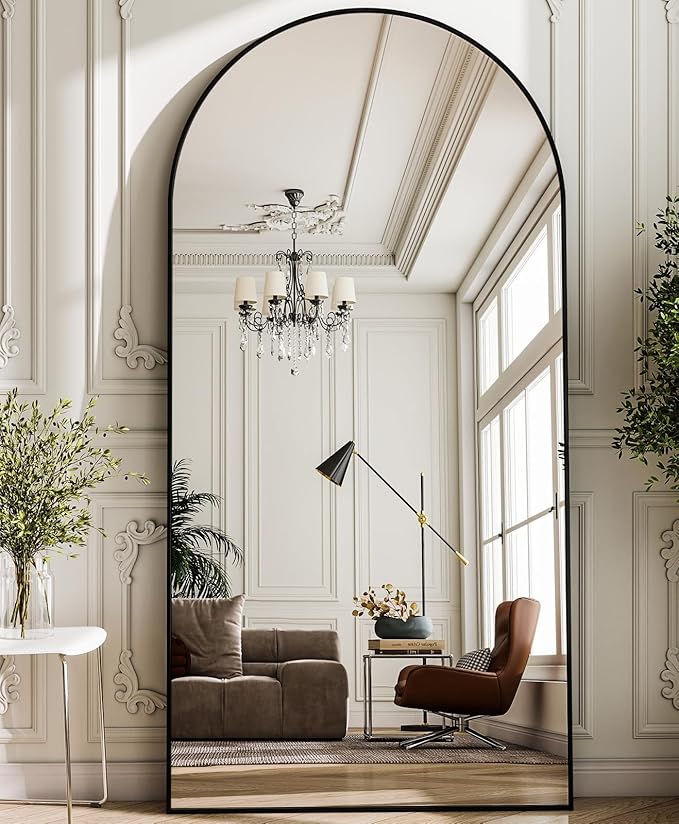 - EXTRA LARGE FLOOR MIRROR-The arched full length floor mirror features a modern style that can complement any type of room decor, adding a touch of elegance to your space while also making it feel more open and bright. With its 76" length and 34" width, this mirror provides a full body view, allowing you to check your outfit and overall appearance from head to toe before you head out the door