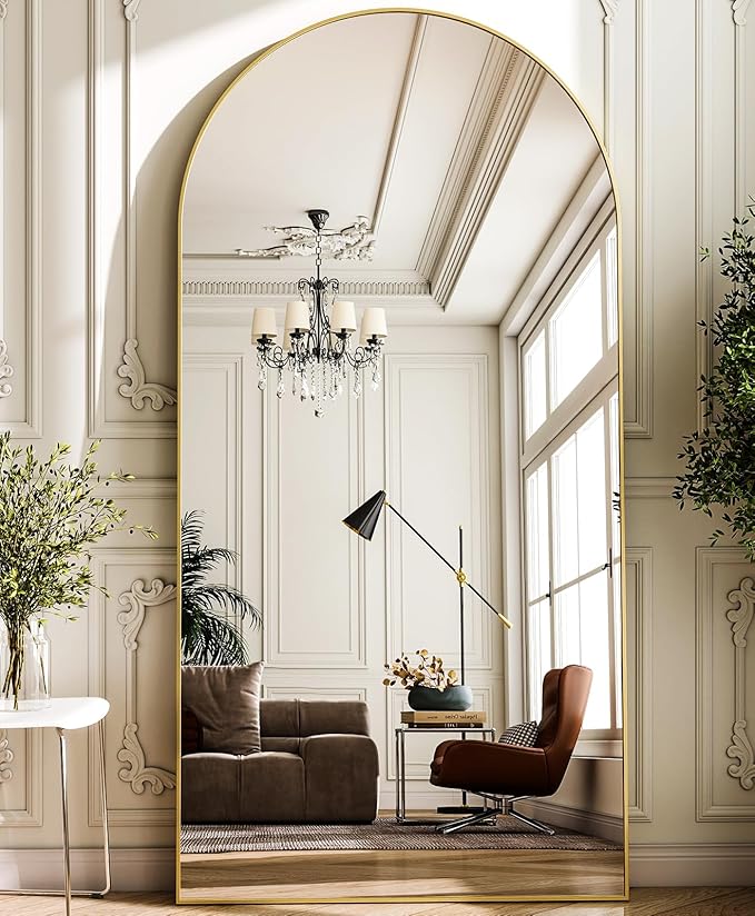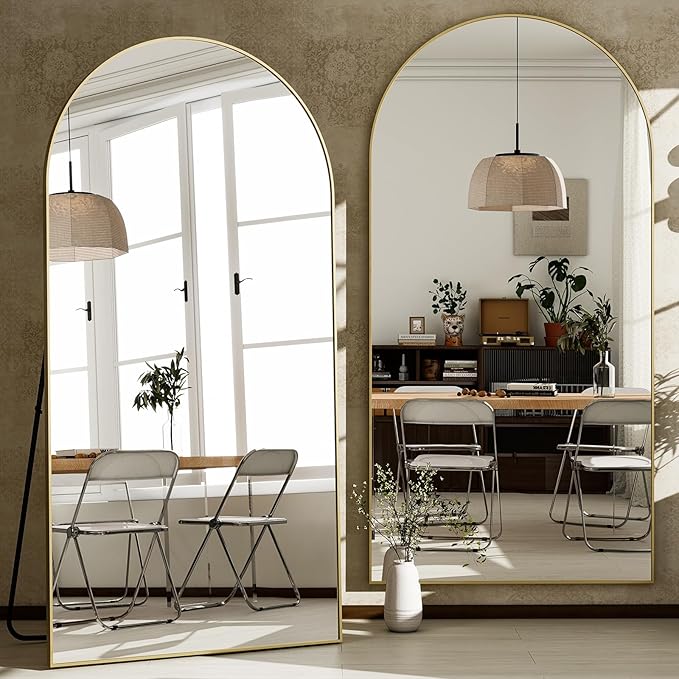 - EXTRA LARGE FLOOR MIRROR-The arched full length floor mirror features a modern style that can complement any type of room decor, adding a touch of elegance to your space while also making it feel more open and bright. With its 76" length and 34" width, this mirror provides a full body view, allowing you to check your outfit and overall appearance from head to toe before you head out the door