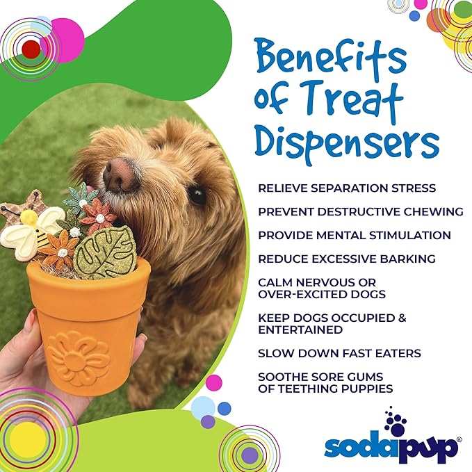 SodaPup Flower Pot – Durable Dog Treat Dispenser & Chew Toy Made in USA from Non-Toxic, Pet Safe, Food Safe Rubber Material for Mental Stimulation, Problem Chewing, Calming Nerves, & More