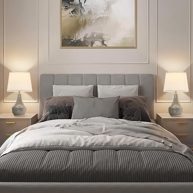 - 【Modern Styles And Widly Use】The beside lamp set of 2 are made with ceramic body, which fit in any styles. With a ceramic lamp body means resistant corrosion and tarnishing waterproof. This table Lamp Set of 2 is an ideal nightstand lamp for living room, bedroom. Also ideal as a gift for family and friends.