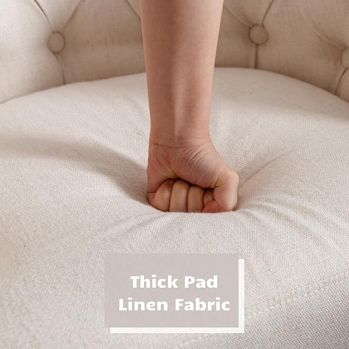 HEAH-YO Modern Dining Chairs Set of 2, Tufted Dining Room Chairs with Barrel Backrests, Upholstered Linen Kitchen Chair for Dining Room, White