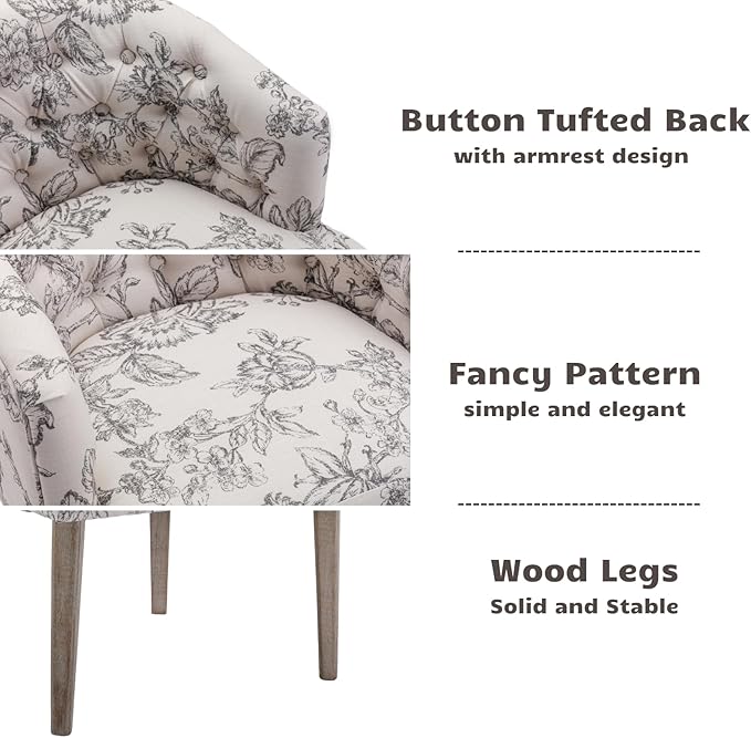 - [Barrel Backrest] The barrel style of the button tufted backrest adds a sense of vintage for the dining room chair. The armrest design offers you a more comfortable dining environment