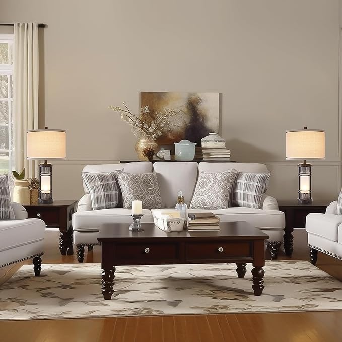 - Modern Table Lamp:The unique glass lamp body design is greatly combined with the beige drum linen lampshade, presenting a stylish and elegant look, adding a touch of modernity to your home