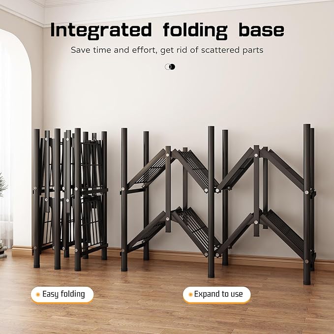 - 【Foldable One-piece Base,Quick and Easy Assembly】:The base is foldable and already assembled,we just unfold the base and assemble the top of the Cloth wardrobe,convenient and fast.