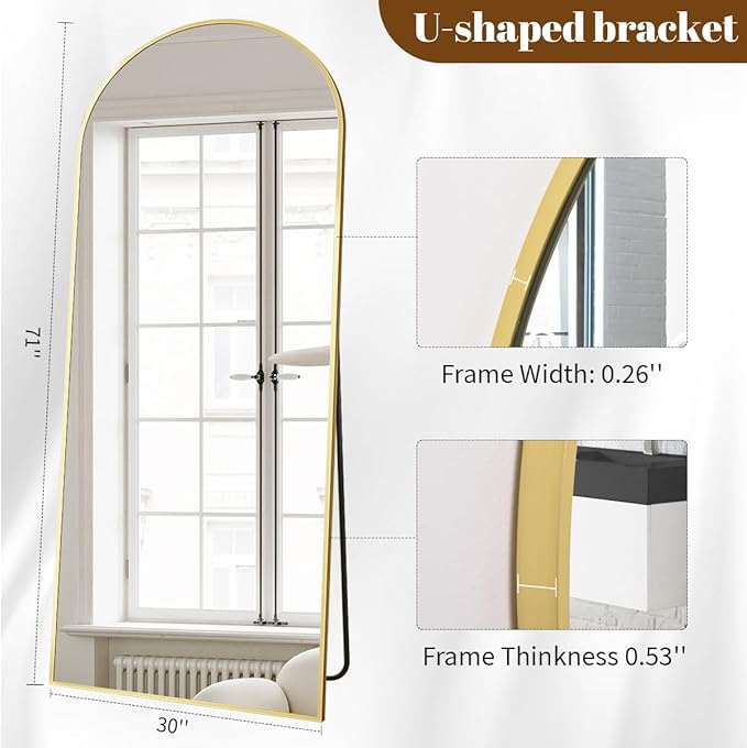 - Elevate Your Decor: Transform your space with our Aluminum Alloy Frame Arched Full-Length Mirror. Its crystal-clear, full-length reflection is a must-have addition to any room in your home, instantly elevating your decor