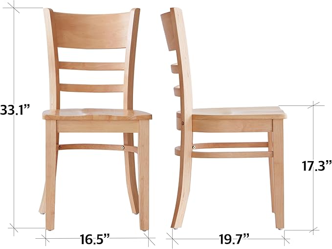Livinia Cabin Wood Seat Dining Chairs Set of 2, Solid Malaysian Oak Wooden Ladder Back Armless Side Chairs (Natural-Oak)