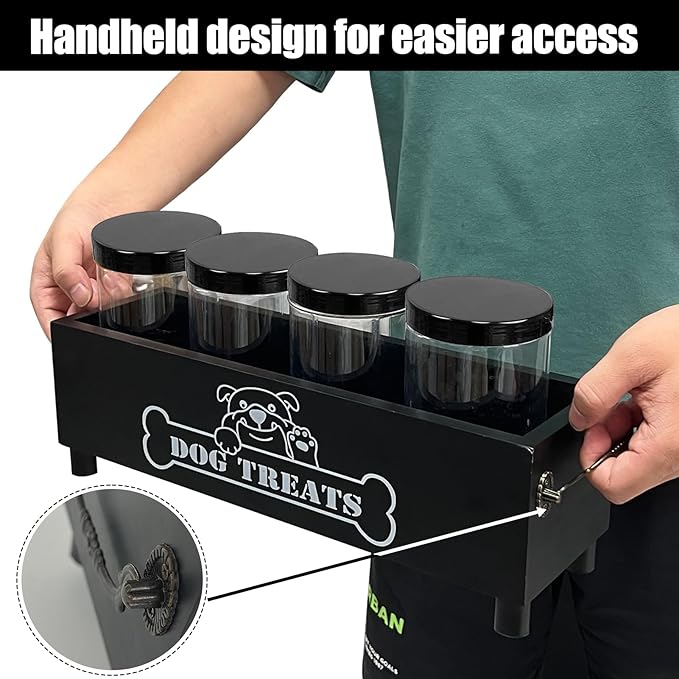 - High-quality Material: Our dog treats storage container is made of 100% eco-friendly solid wood, the side vintage handles are made of high quality metal, very beautiful, durable and not easy to deform. Pet plastic snack cans is made of plastic, it won't break and is safer and more reliable compared to glass snack jars, which can ensure the safety of your pet.
