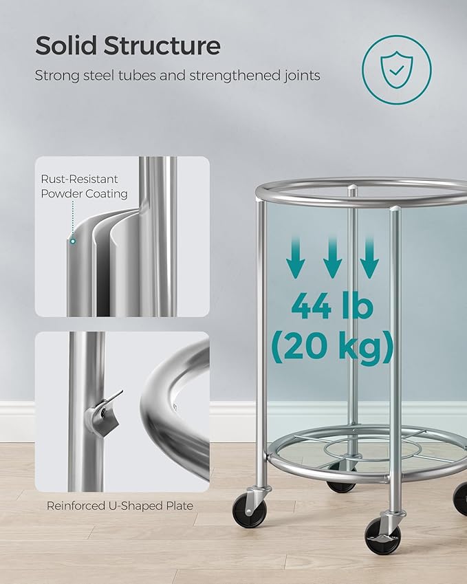 - Stable and Durable: With sturdy steel tubes and reinforced U-shaped plates, this laundry organizer boasts a solid structure that can support up to 44 lb. The powder coating makes the tubes rust-resistant for greater durability