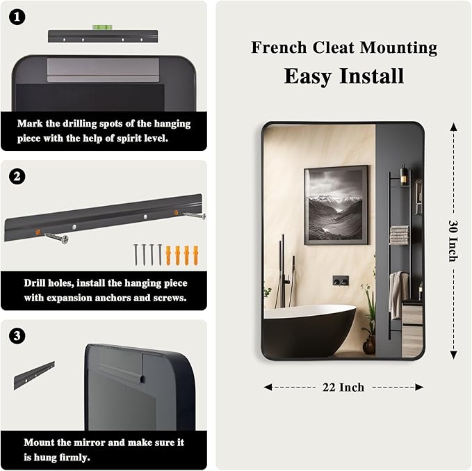 - Package Including: Deep framed wall mirror + instruction + french cleats + leveler + screws