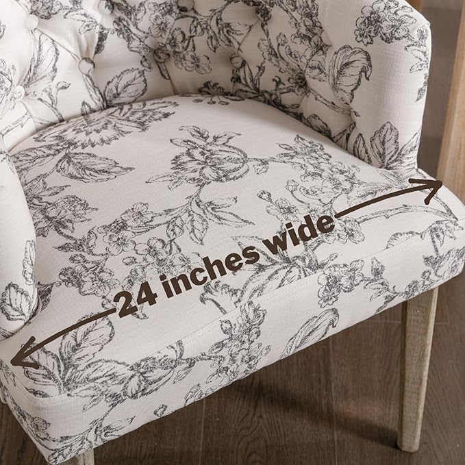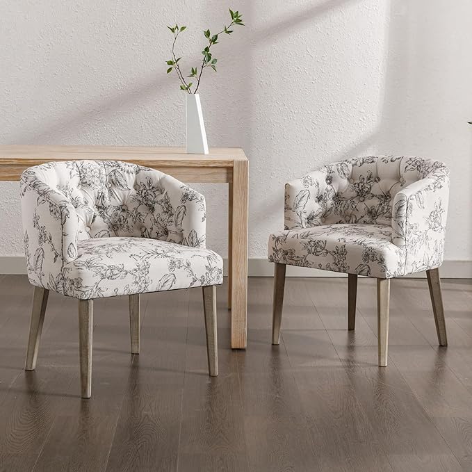DUOMAY Modern Tufted Dining Chairs Set of 2, Linen Upholstered Side Chair, Comfy Accent Barrel Chair with Wood Legs for Home Kitchen Dining Room Living Room Restaurant, Beige Flower Pattern