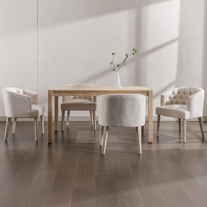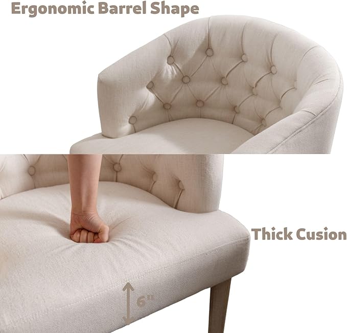 - [ELEGANT&COMFY]:Our dining chair features a button tufted back of barrel shape, covered with linen fabric, available in three colors, adds elegance to your dining room. The seat is 24" wide, providing you with extra comfort.