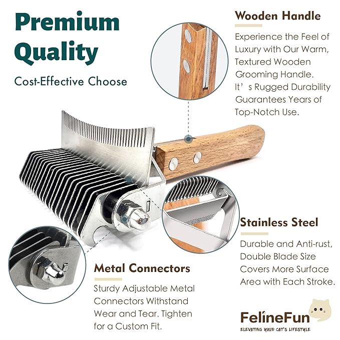 - ใ๐๐ผ๐๐-๐๐ณ๐ณ๐ฒ๐ฐ๐๐ถ๐๐ฒ ๐ฆ๐ผ๐น๐๐๐ถ๐ผ๐ปใOne Comb, Multiple Uses. This comb serves as a Dematting Brush, Detangling Comb, Undercoat Comb & Deshedding Rake. Easily Tackle Mats & Tangles, Then Switch to Deshedding for Cats , Saving you from Buying Separate Tools.