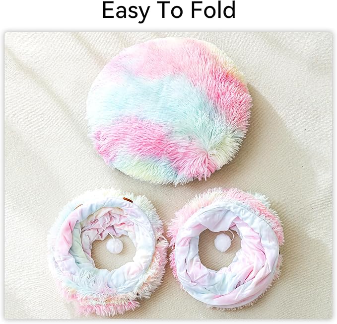 HIPIPET Winter Plush Cat Tunnel with Bed, Multifunctional Cat Toys for Small to Large Cats (Rainbow)