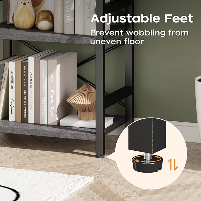 - 【Versatile Bookcase Shelf】The adjustable feet at the bottom are designed to make this industrial bookshelf suitable for different conditions of uneven floors.You can put it in your living room, study room, bedroom, and office to meet your various storage needs and greatly save your space and organizing time.This bookcase is compact and lightweight without occupy much space,you can use it at anywhere you need to better organize your messy items.