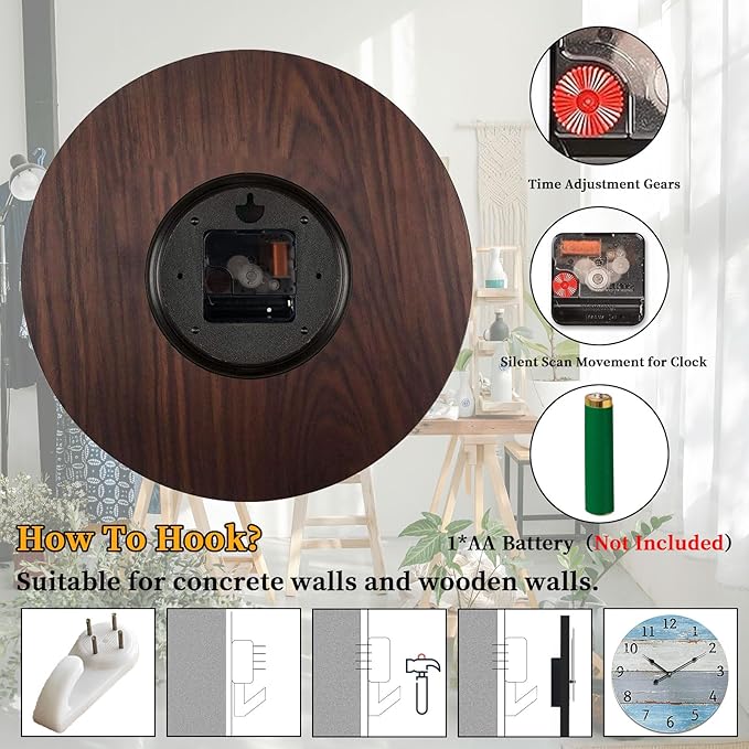 - Rustic Charm: The farmhouse wall clock exudes a rustic charm that adds character and warmth to any living room decor. It brings the countryside aesthetic right into your home