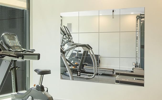 Ruomeng Home Gym Mirror Tiles - 10" x 10" x 12Pcs Full Length Mirror Tiles Glass Frameless Wall Mirror for Home Gym, Bedroom, Door & Bathroom