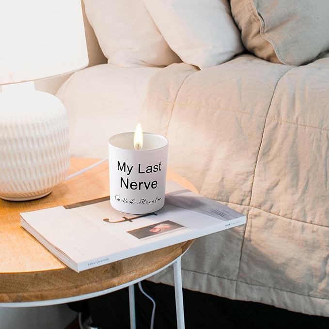 BFJLIFE Candles Gifts for Women Funny Unique Novelty My Last Nerve Candle Christmas Birthday Gift for Sister Best Friend Stocking Stuffers for Women Lavender Scented Soy Candle